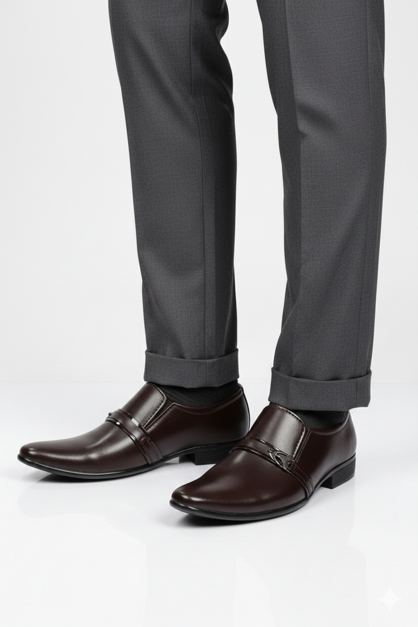 - Upper: High-shine polished leather in deep mahogany brown, offering a rich, formal tone with subtle warmth.