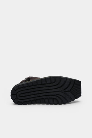 - Upper: Rich brown leather with hand-stitched overlapping straps, offering both structure and flexibility.