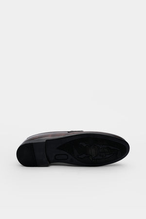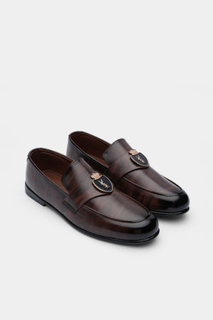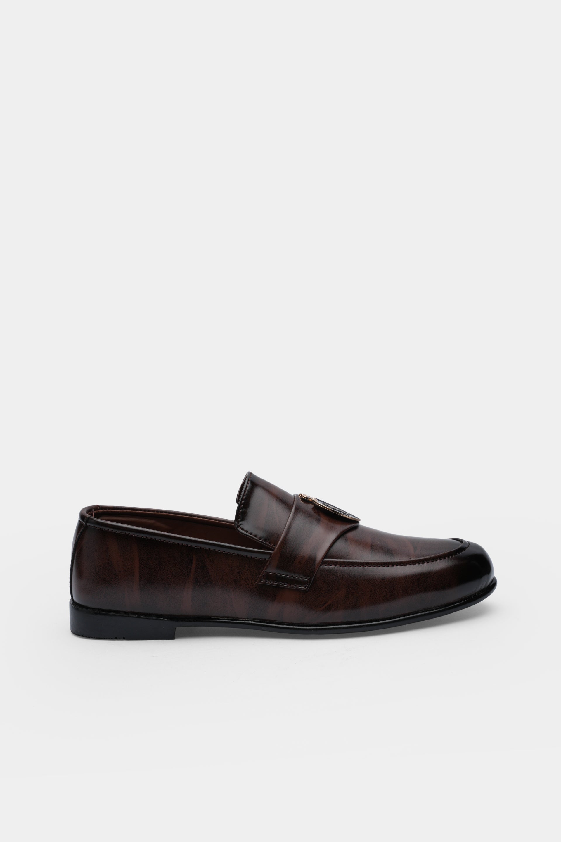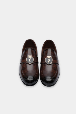 Step into sophistication with the Loopy Luxe Gradient loafers. Crafted from polished leather with a rich brown-to-black fade, these slip-ons feature a signature gold emblem for a refined finish. Ideal for formal occasions or upscale business attire